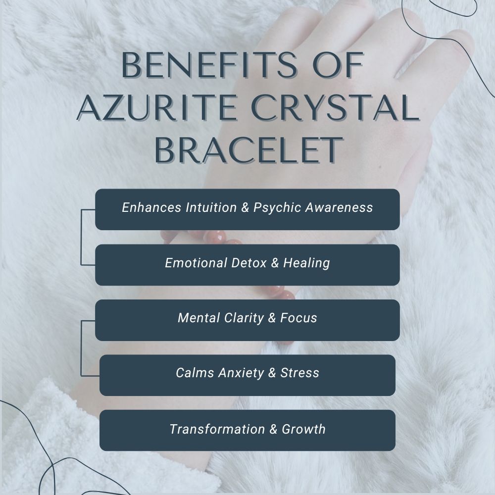 - Transformation & Growth: Azurite assists in breaking through limiting beliefs and emotional patterns. It supports personal evolution, helping you align with your soul purpose and higher calling.