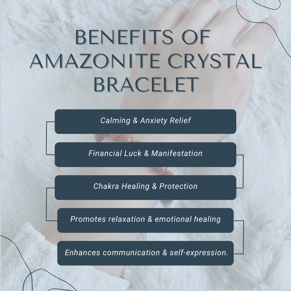 This Amazonite Crystal Bracelet is designed to bring you calm, confidence, and clarity. Known as the “Gambler’s Stone,” Amazonite helps reduce stress, attract good fortune, and support honest self-expression. Reiki-infused and made with premium beads, it’s perfect for daily wear or meditation.