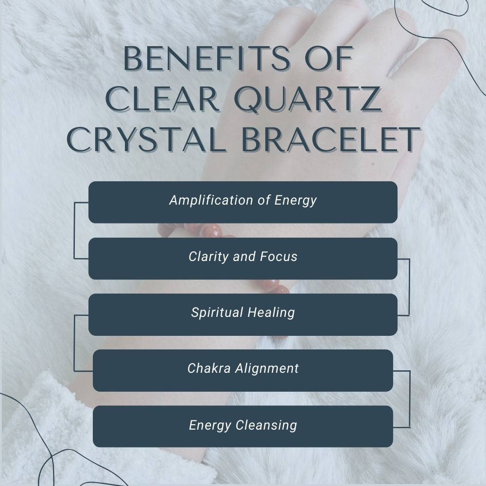 The Clear Quartz Crystal Bracelet is your everyday energy companion. Known as the Master Healer, this crystal bracelet helps clear your mind, enhance focus, and keep you balanced throughout the day. With its faceted crystal bracelet beads and flexible design, it offers both comfort and elegance. Reiki-infused, it carries gentle yet powerful positive energy to support emotional and spiritual healing.