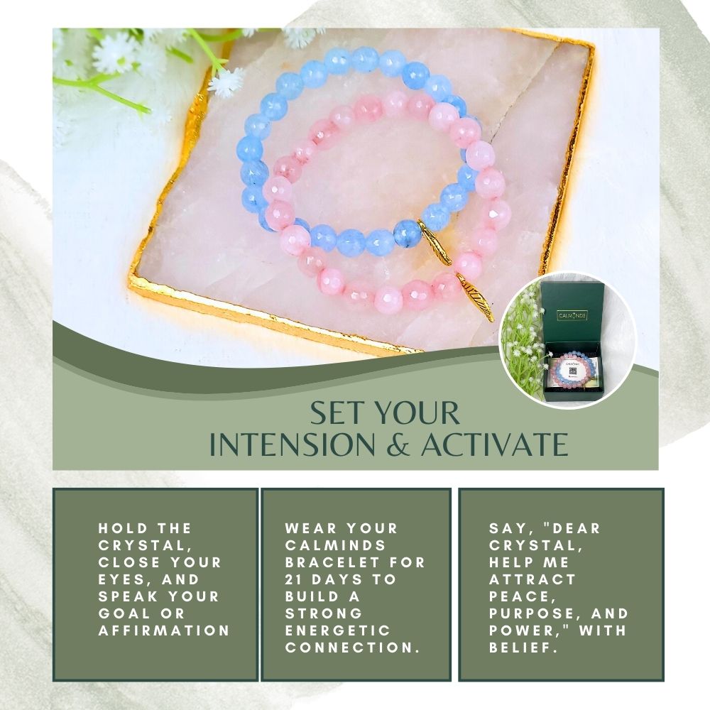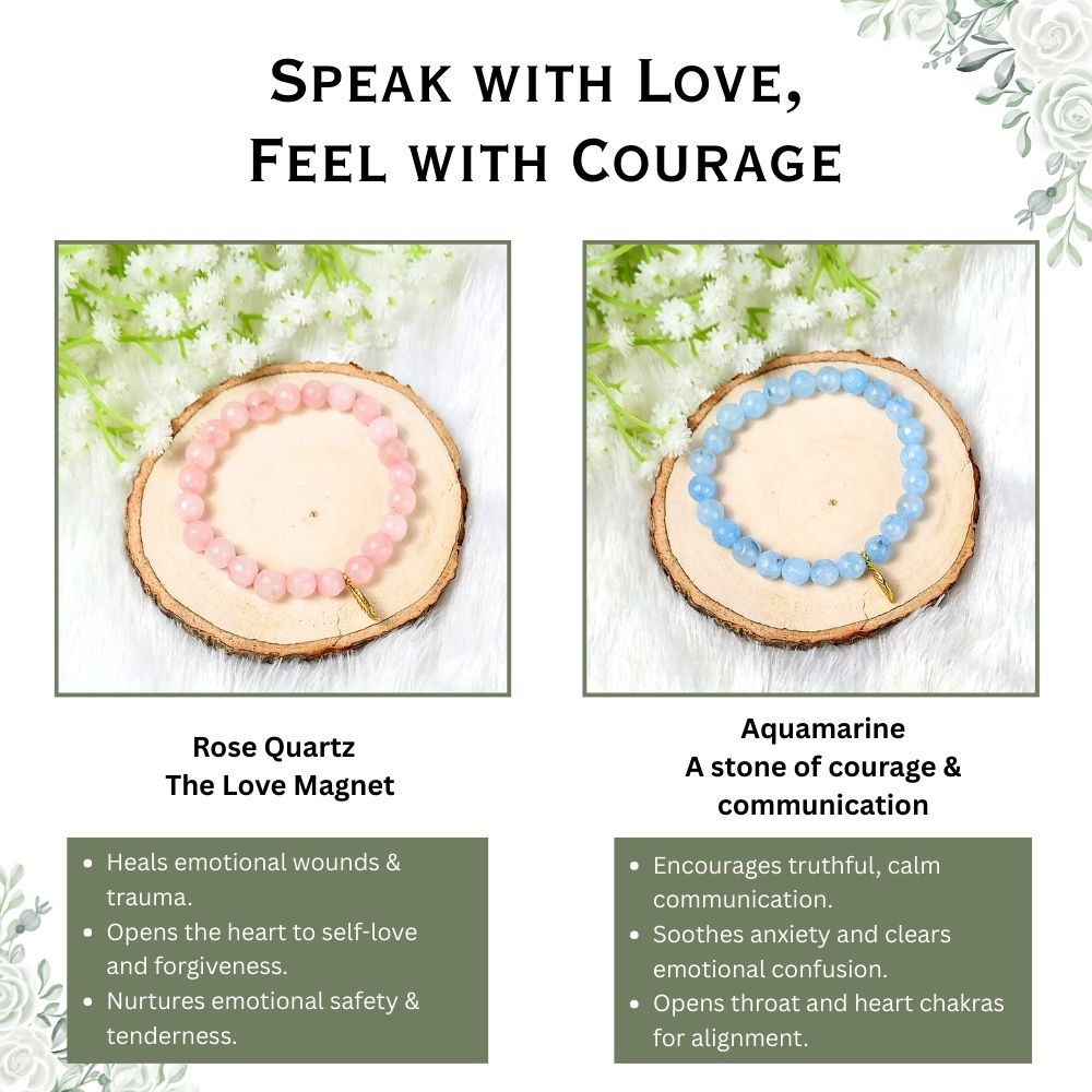 Description: Bring harmony, love, and emotional healing into your life with the Calminds Rose Quartz & Aquamarine Crystal Bracelet Combo Set – a powerful spiritual gift designed especially for women. Rose Quartz, the stone of unconditional love, nurtures relationships and encourages emotional balance. Aquamarine is known for its calming energy that helps reduce anxiety, improve communication, and offer gentle protection from negative energies. This combo set is perfect as a meaningful anniversary gift, thoughtful Mother's Day gift, or a versatile gift item for women who value emotional well-being and inner peace. Handcrafted with genuine healing stones, these bracelets not only elevate style but also promote love, hormone balance, and serenity. Beautifully boxed for gifting, this combo set is an ideal blend of spiritual purpose and elegance.