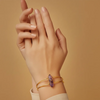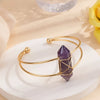 The crystal is securely wire-wrapped in an elegant gold-tone finish and set on a refined adjustable open cuff. The deep purple hue paired with minimal gold detailing gives this bracelet a luxurious, mindful aesthetic—perfect for those who value both beauty and purpose.