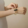 The crystal is securely wire-wrapped in a gold-tone finish and set on a refined adjustable open cuff, creating a powerful contrast between bold black stone and elegant metal. This bracelet is not just spiritual—it is a luxury statement for conscious living.