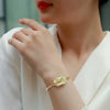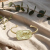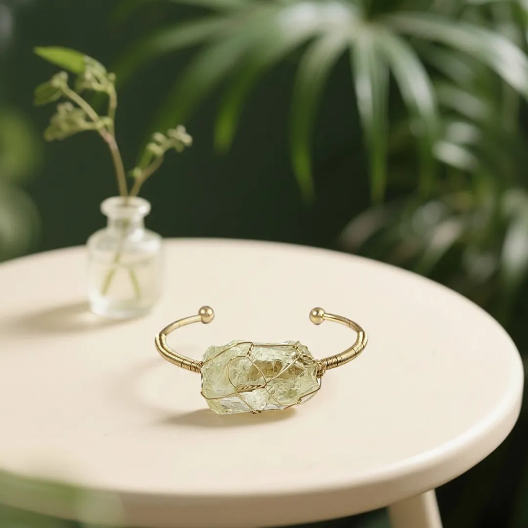 The crystal is securely hand-wrapped in gold-tone wire and set on an adjustable open cuff, blending natural raw beauty with modern luxury design. This bracelet is both a statement accessory and a mindful companion—perfect for workdays, creative sessions, or intentional living.