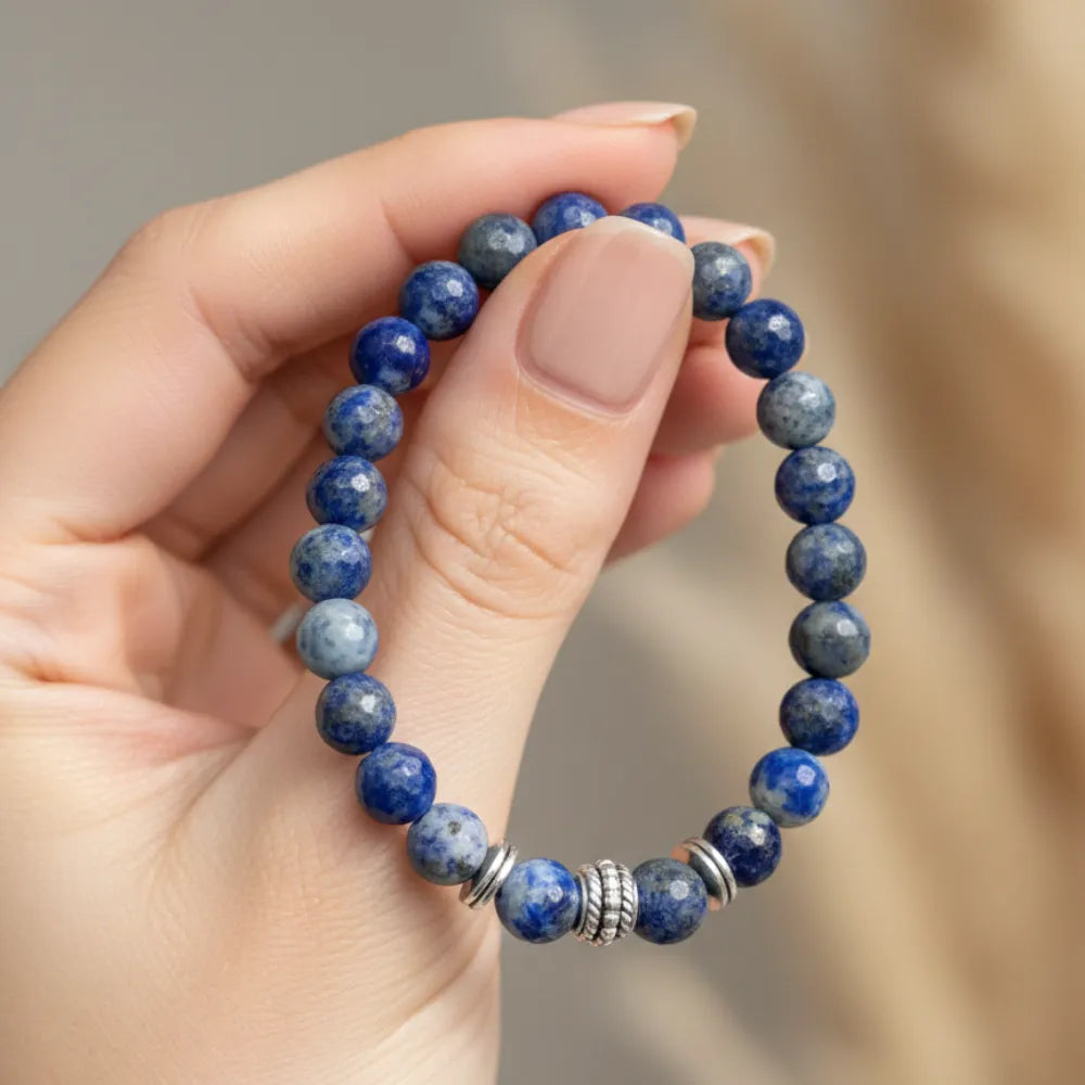 This bracelet helps boost intuition, self-expression, and creativity. Lapis Lazuli promotes emotional healing, reduces stress, and supports clear communication. It also acts as an energetic shield, protecting you from negativity while enhancing mental clarity and focus.