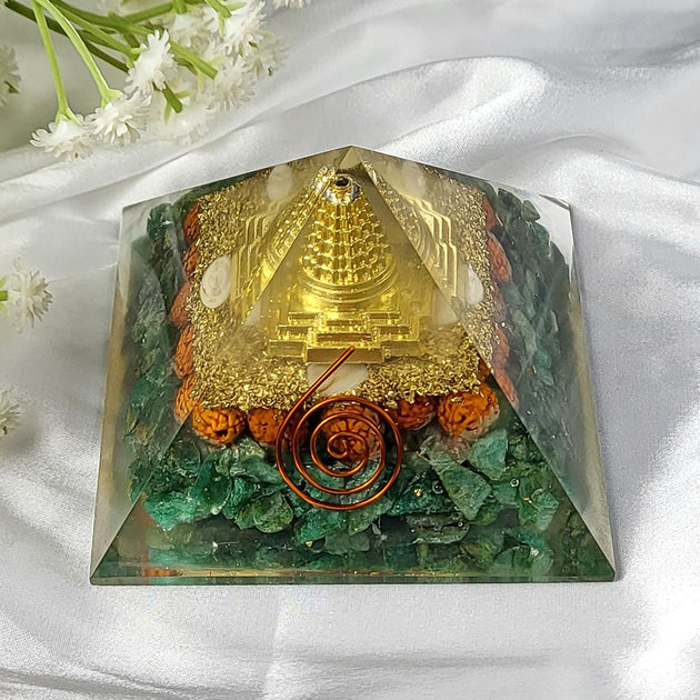 Rudraksha & Gomti Chakra Orgonite Pyramid