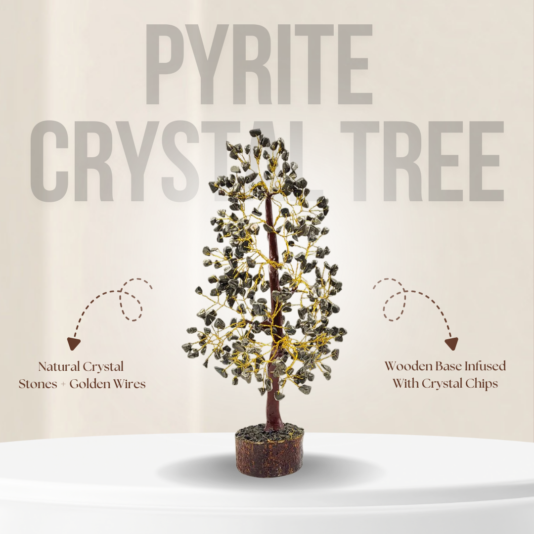 Invite wealth, confidence, and positive energy into your space with this handcrafted Pyrite Crystal Tree, made using 300 natural pyrite stone beads and designed to support prosperity and protection. Known as the Stone of Abundance, pyrite is believed to attract financial growth, shield against negative energy, and enhance focus—making this crystal tree ideal for homes, offices, and workspaces.