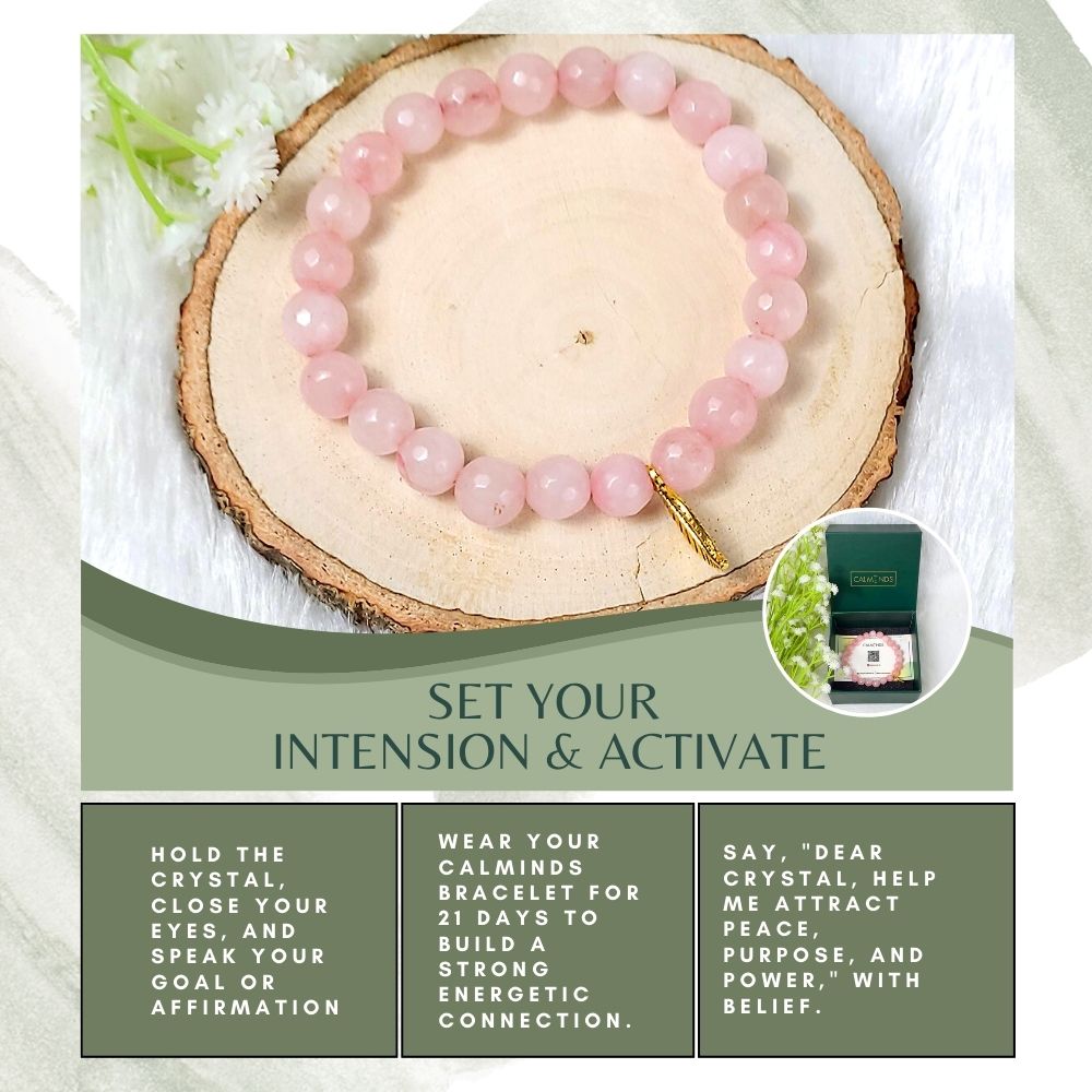 - Love & Compassion: The CALMINDS Rose Quartz Healing Bracelet is known as the "Stone of Love," attracting unconditional love, compassion, and emotional harmony in relationships and self.