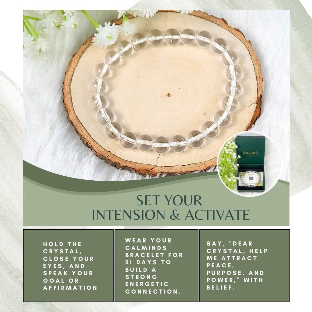Experience clarity, balance, and spiritual upliftment with the Clear Quartz Crystal Bracelet by Calminds. Handcrafted with premium 8mm natural clear quartz beads and infused with Reiki energy, this bracelet is designed to amplify your intentions, cleanse negative energy, and support holistic healing. With a stretchable design for a universal fit, it's ideal for everyday wear, meditation, and manifestation practices.