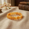 Designed with premium flat slab beads, this bracelet offers a modern and luxurious look that sits comfortably on the wrist. Its warm golden-yellow tones radiate uplifting energy and connect strongly with the Solar Plexus Chakra (Manipura)—the center of confidence, willpower, and decision-making.