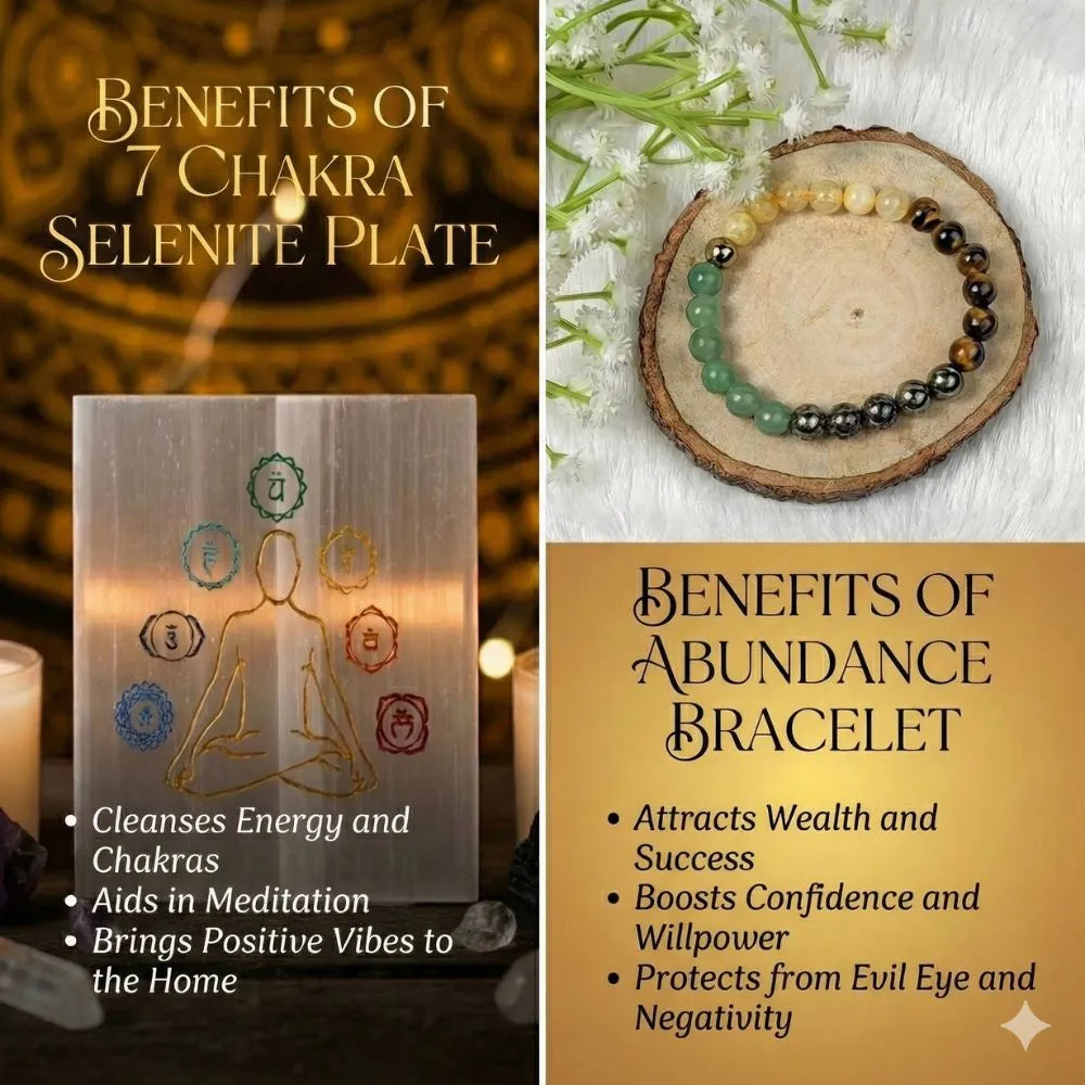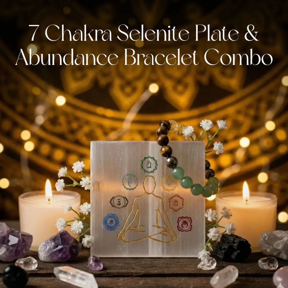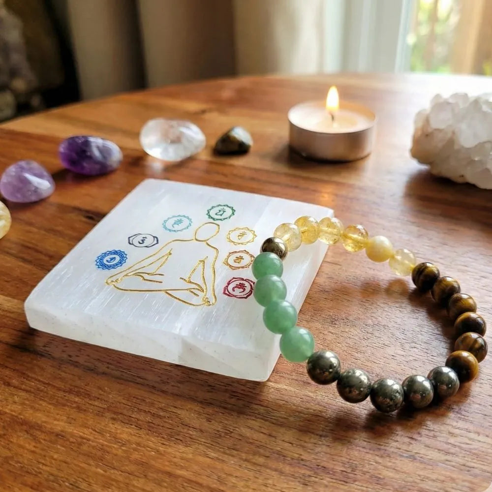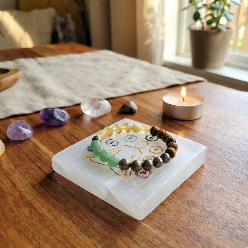 The Wealth & Energy Complete Combo is thoughtfully curated for individuals who seek financial positivity, inner balance, and aligned energy in their daily lives. This powerful pairing combines a purpose-driven crystal bracelet with a pure selenite charging plate to support abundance, clarity, and mindful living.