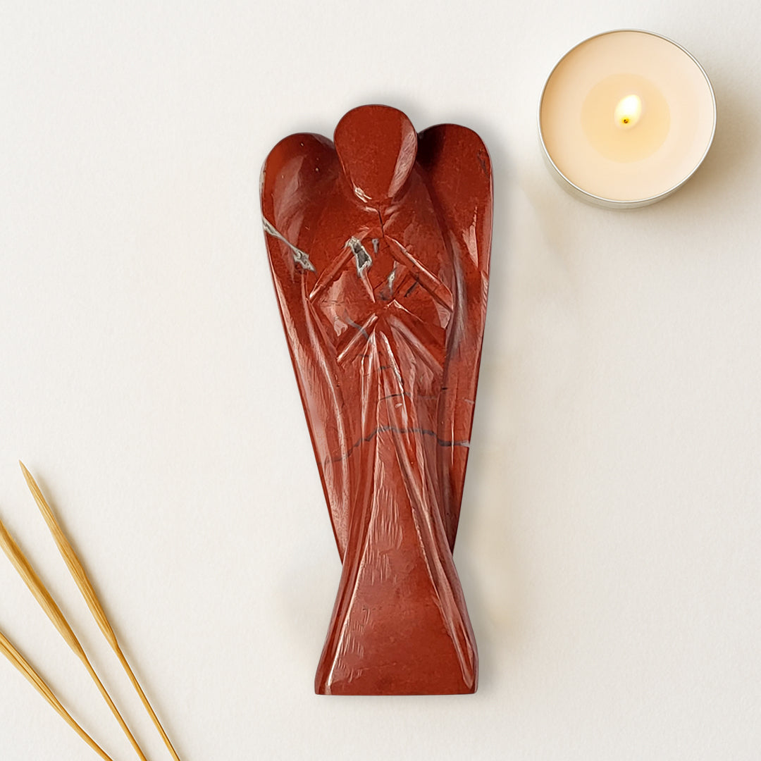 Bring strength, grounding, and stability into your life with the Red Jasper Angel. Hand-carved from natural Red Jasper crystal, this angel figurine is a symbol of courage, vitality, and emotional balance. Whether placed in your sacred space, home décor, or gifted to a loved one, it radiates protective and nurturing energy.